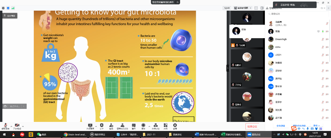为加强学术交流,应生命学院霍毅欣教授邀请,中国农业大学食品科学与工程学院郑浩教授于11月24日带来了题为《新型蜜蜂模式动物在肠道菌群研究的应用与展望》的线上学术报告。报告由马晓焉副研究员主持,近40名师生参加了本次报告。